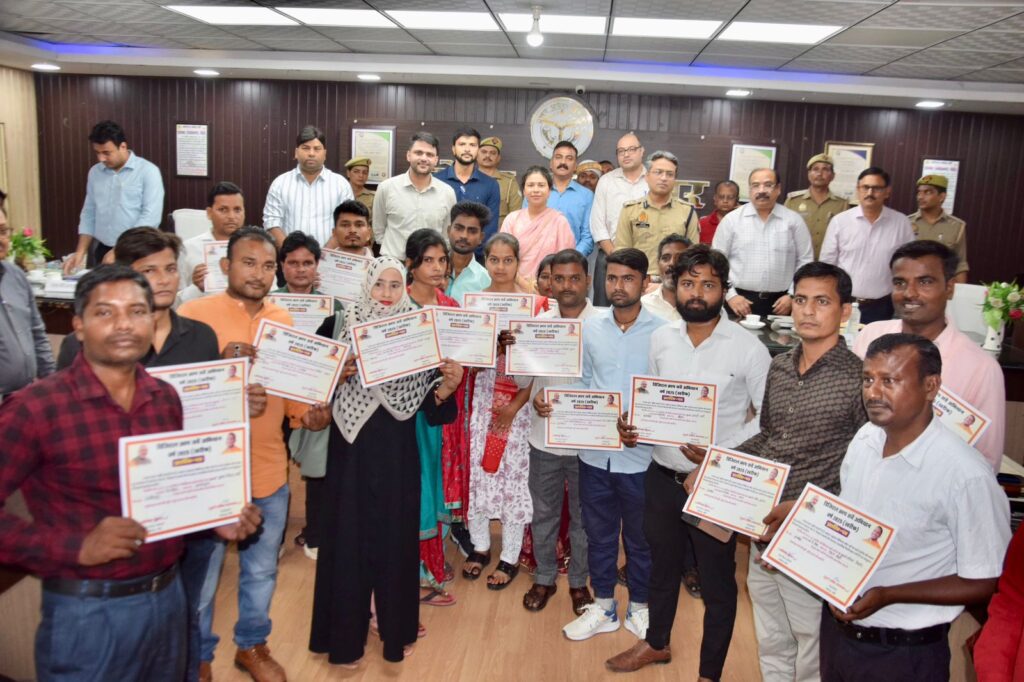 तहसील सदर में आयोजित समारोह में डीएम दुर्गा शक्ति नागपाल, एसपी संकल्प शर्मा, सीडीओ अभिषेक कुमार और एडीएम नरेंद्र बहादुर सिंह ने डीपीआरओ विशाल सिंह की मौजूदगी में लखीमपुर, बेहजम, नकहा और फूलबेहड़ क्षेत्र के पंचायत सहायक, सफाई कार्मिक, रोजगार सेवको को प्रशस्ति पत्र देकर सम्मानित किया।