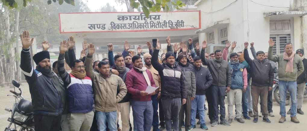 मितौली खीरी।उत्तर प्रदेश ग्राम रोजगार सेवक संघ जिला ईकाई लखीमपुर खीरी के आवाह्न पर को जनपद के समस्त 15 विकास खण्डों में ज्ञापन खण्ड विकास अधिकारी को सौंपा जा रहा है। जिसमें मुख्य मांग विंदुवार निम्नलिखित हैं।-ग्राम रोजगार सेवकों का बकाया मानदेय प्रत्येक माह की 30 तारीख को प्रत्येक दशा में विकास खंड स्तर से बुक किया जाय। तथा समस्त बकाया मानदेय दिया जाय। ईपीएफ कटौती की बकाया धनराशि रोजगार सेवकों के उन खाते में जमा कराई जाय। ईपीएफ कटौती की धनराशि जमा करने हेतु हर बार रोजगार सेवकों से प्राइवेट के लिए अनुचित धनराशि जमा कराई जाती है। जो कि नियम विरुद्ध है जिसे समाप्त कर विकासखंड से अधिकृत लेखाकार के द्वारा जमा कराई जाए। नॉलिया 4- मृतक आश्रित ग्राम रोजगार सेवकों की पत्रावली जो विकासखंड पर लंबित है उन पर आवश्यक कार्रवाई करते हुए मृतक रोजगार सेवक के आश्रित को शासनादेश के अनुसार नियुक्ति प्रदान की जाए। जली डया प्रभारी 7734 में मनरेगा योजना में बाहरी व्यक्ति/दलालों को विकासखंड से अनुचित लाभ लेकर 60:40 अनुपात तोड़कर कच्चे पक्के कार्य दिए जा रहे हैं। जिससे रोजगार सेवकों को प्रताड़ना का सामना करना पड़ रहा है। और योजना पर प्रतिकूल प्रभाव पड़ रहा है। आए दिन विकासखंड के मनरेगा सेल में दलालों का जमावड़ा रहता है। जिस पर शीघ्र ही रोक लगाई जाए। 2 6- मनरेगा के एस्टीमेट तकनीकी स्वीकृत के लिए जो भी जनपद पर भेजें जाते हैं उनको अनुचित लाभ के लिए महीनों तक फोल्डर में रोक कर रखा जाता है। जिससे कार्य बाधित होते हैं। आवश्यक कार्यवाही की जाए। मनरेगा से कराए गए पक्के कार्यों की सामग्री लैबटेस्ट में अनुचित फीस ली जाती है। जिससे तिभिन समस्याओं का सामना करना पडता है आवश्यक कार्रवाई की जाए। उपरोक्त 07 सूत्रीय ज्ञापन पर आवश्यक कार्यवाही की जाए।यदि मांगपत्र पर विचार नहीं किया गया।तो 15 जनवरी को हमारा जिला संगठन अपनी समस्याओं के लेकर मुख्य विकास अधिकारी को ज्ञापन सौंपेंगे।