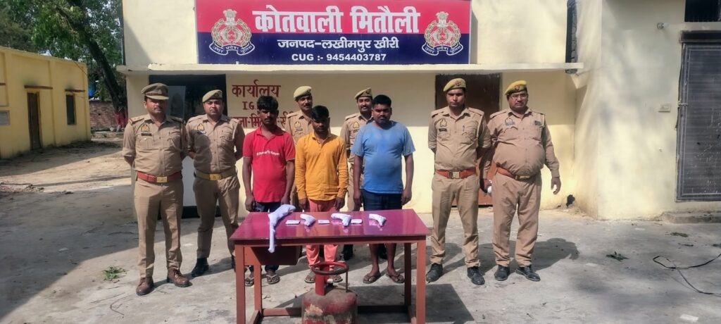 मितौली खीरी। थाना मितौली पुलिस ने क्षेत्र में हो रही चोरी की घटनाओं का सफल खुलासा करते हुए तीन अभियुक्तों को गिरफ्तार किया है। पुलिस ने इनके कब्जे से चोरी का माल, नगदी व अवैध असलहा भी बरामद किया है।